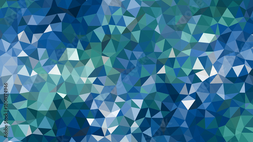 abstract background with blue and green, featuring a mosaic-like pattern of geometric shapes, mostly triangles and polygons. It creates a modern and artistic feel.