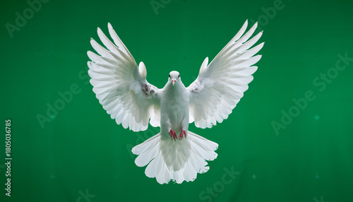 paloma blanca volando en cámara lenta sobre un fondo verde chroma key uniforme. La paloma mueve las alas con gracia, mostrando detalles nítidos en sus plumas.