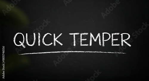 Quick Temper: A chalkboard displays the phrase Quick Temper written in a simple, direct style, possibly implying a state of impatience or sudden anger.