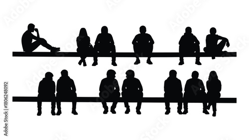 Silhouettes of people sitting on ledges isolated on white background, Vector