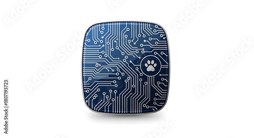 青い回路基板パターンが未来的に輝くオブジェ with 洗練されたミニマルデザイン