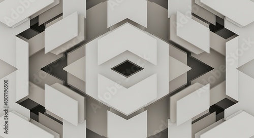 立体的な幾何学模様が重なり合う抽象的な背景、ミニマルで洗練されたデザイン