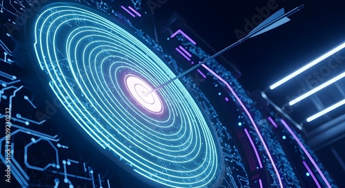 Objetivo digital, flecha golpeando la diana, experiencia en tecnolog?a, visualizaci?n de ?xito