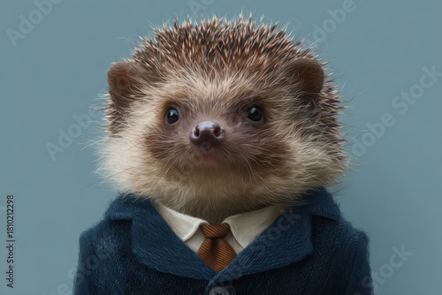 Charming Portrait of a Young Hedgehog Dressed in a Suit: A Whimsical Animal Illustration