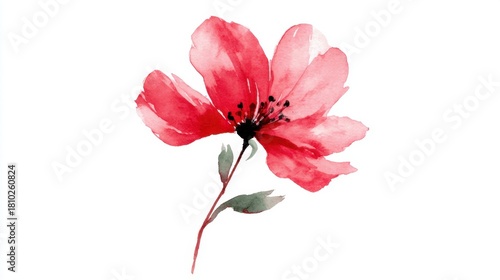 Vibrant red petals gracefully open with soft green leaves beneath showcasing delicate beauty.
