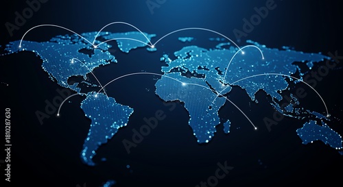Digital World Map with Network Connections and Global Communication Concept