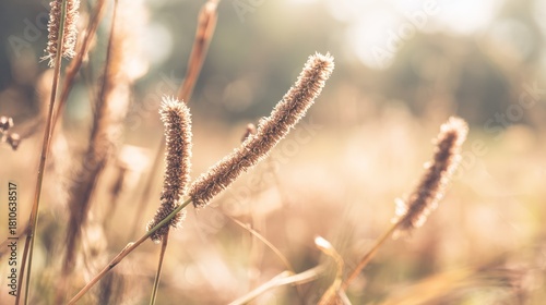 Plantago ovata plant with slender flower spikes swaying in golden hour light. gardening catalogs, home-decor guides, designed for gardening and botanical catalogs.