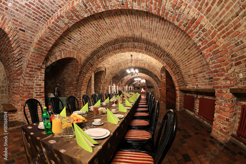 Stół w restauracji przygotowny na przyjęcie weselne.