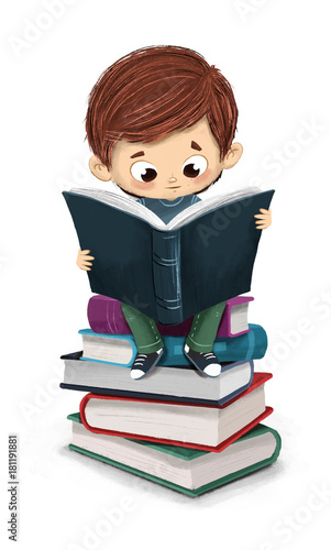#1083306100Happy Boy Reading Book, Colorful Cartoon Illustration