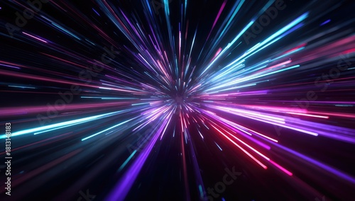 Abstract vibrant light trails forming a tunnel, creating a sense of rapid motion