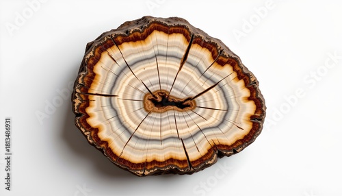 An irregularly shaped piece of driftwood with prominent natural rings, displayed against a neutral background.