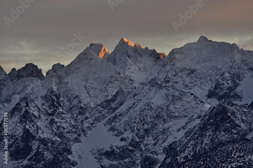 Łomnicki Szczyt w promieniach zachodzącego słońca