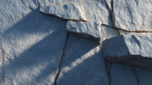 Close-Up View of Textured Rocky Surface with Shadows Highlighting Natural Cracks and Crevices in the Stone, Ideal for Backgrounds and Nature Themes
