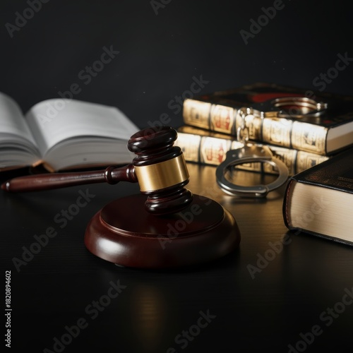 Close-up of a judge’s gavel and scales of justice placed on a wooden desk, symbolizing law, authority, and legal judgment.