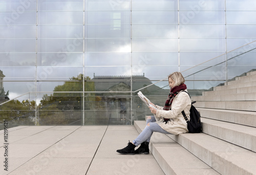 Frau liest Zeitung