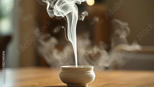 White smoke rises from a simple ceramic incense burner, illuminated by soft indoor lighting. Activity booklets and museum guides,