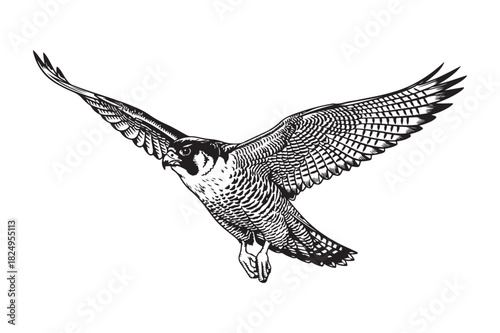 Detailed sketch of an osprey in flight with wings spread wide