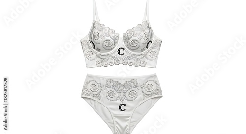 White lace lingerie set isolated on white background