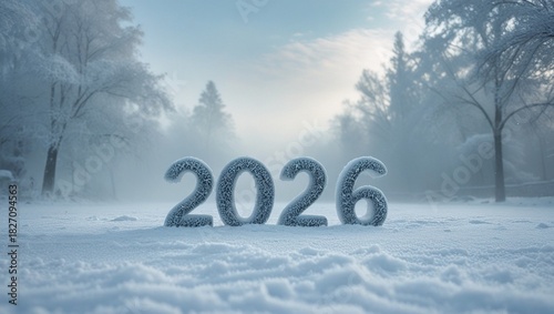 Die Jahreszahl 2026 steht mitten in einer Winterlandschaft