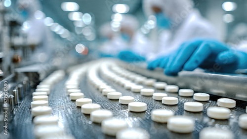 Pharmaceutical worker produces tablets on production line
