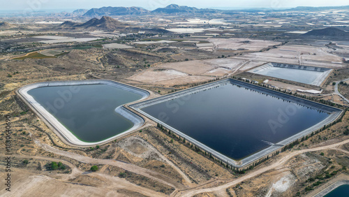 Embalses para riego a pie de montaña para distribuir en zona de viñedos en la comarca de Novelda en Alicante
