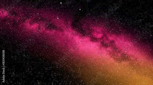 A vibrant cosmic expanse featuring a gradient of colors and a luminous galactic center