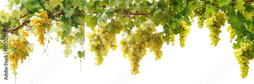 Set of Smooth and glossy ripe grapes arranged symmetrically on white on transparent png background. Ai generated