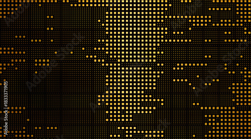 Abstrakcyjne złote piksele na ciemnym tle, technologiczny cyfrowy wzór w stylu LED.