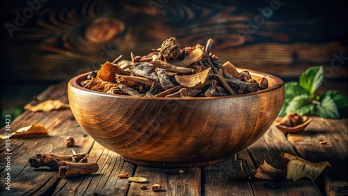 Earthy delights in a miniature symphony of decomposition unfold in this rustic wooden bowl