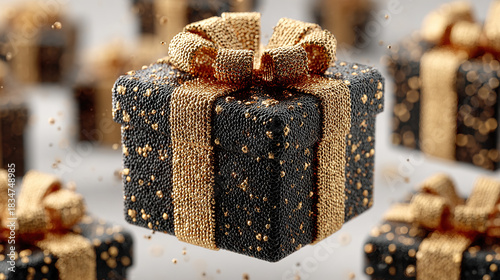 Black & Gold Glitter Gift Box with Scattered Glitter - Floating Decor Holiday Gift Material