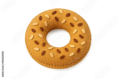 Handcrafted felt bagel toy representing a delicious breakfast item with sesame seeds, isolated on transparent background