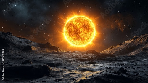 Premium 3D astronomical elements featuring luminous sun with corona details and precisely modeled lunar surface with authentic maria and highland regions arranged in elegant composition