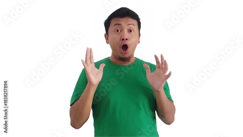 Wow, Funny face of Asian man. Shocked asian man isolate on white. Amazed and feels shocked asian man. Indonesian man with suprise expression. looking on the camera with shocked gesture.