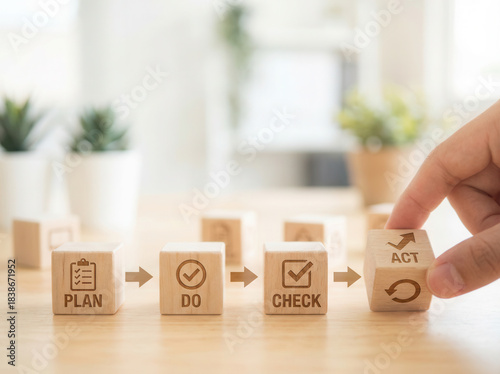 Wooden cubes representing workflow enhancement aligned manually using shallow depth and clean soft blurred atmosphere..png