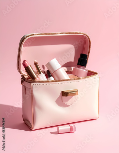 Różowa kosmetyczka z kosmetykami
