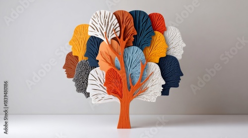 Diverse human faces forming a conceptual tree representing global community, unity, and interconnected people