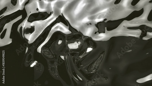 swirling abstract liquid surface in black and white with shiny reflections wavy patterns and glossy textures