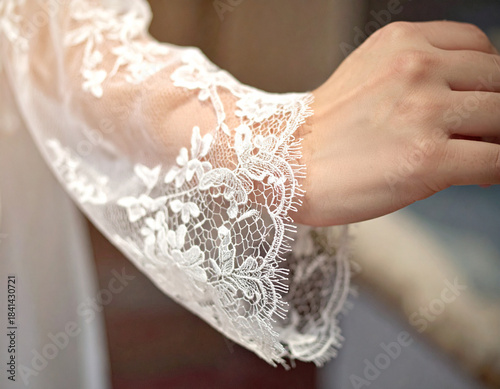 Koronkowy rękaw sukni ślubnej - biała koronka