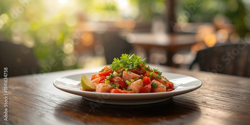 Colorful ceviche dish fresh ingredients, suitable as a vibrant food presentation for menu design
