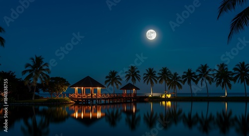 Tropical Night Beach with Moonlit Palms and Cabana