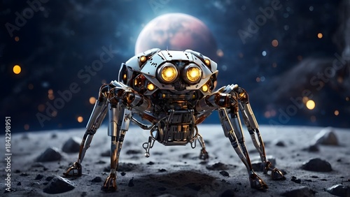 A sixlegged spider robot explores the moon Created with Generative AI technology