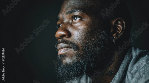Contemplative Gaze: A close-up shot of a thoughtful individual, their face reflecting deep introspection, set against a subdued backdrop.