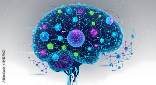 Brain with colorful neural network connections.