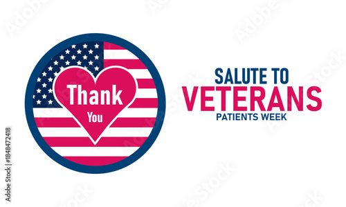 National Salute to Veteran Patients Poster Banner and Background Design Template Featuring Military Ribbon and Healthcare Icons Illustration for Veteran Recognition, Appreciation, and February Celebra