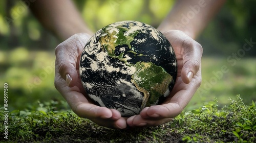 Celebrating World Mental Health Day with an illustration of humanity caring for the planet's mind.