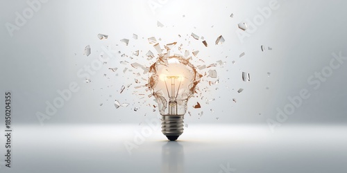 Incandescent lightbulb cracking and breaking apart, highlighting waste and disposal concerns