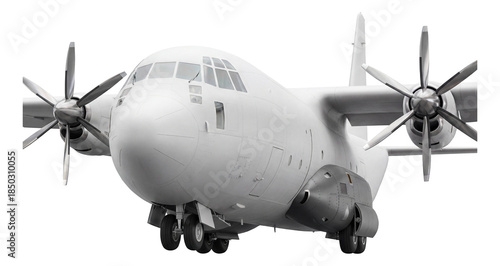#1822666585Front View of a Modern White Turboprop Airplane with SixBladed Propellers on White
