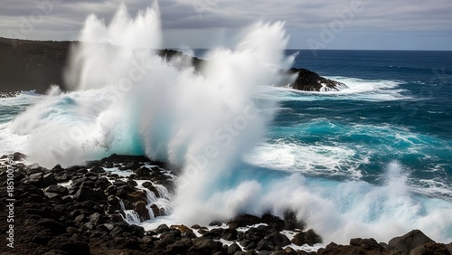 Powerful waves crashing against rocky shores