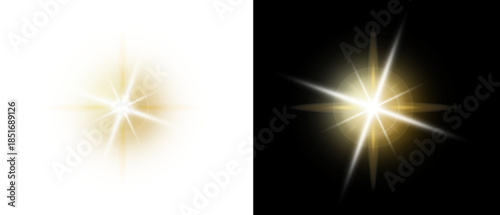 PNG image of Collection of brilliant golden starburst and lens flare light effects isolated on a black or transparent overlay on white background. on white background