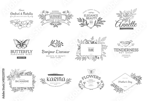 Collection of vector logo templates. Flourishes calligraphic elements and frames. Modern style of design elements, postcard, banners.
